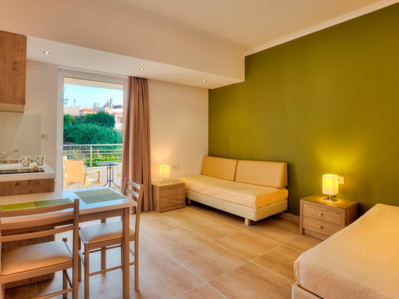 - 1-bedroom apartment Standard (APX1), Appartement, Nichtraucherzimmer, im Hauptgebäude, Poolblick, Gartenblick, ca. 32 m², Gesamtanzahl der Räume in diesem Zimmertyp: 2, Aufteilung wie folgt: Wohnzimmer, 1 Schlafzimmer, 2 Einzelbetten, 2 Schlafsofas, Klimaanlage: individuell regelbar, kalt, Fußboden: Fliesenboden, Safe, Kochnische, Kühlschrank, Wasserkocher, Telefon, Internet: WLAN/WiFi, Fernseher: Flatscreen, im Schlafzimmer, Sat-TV, Radio, Reinigungsservice, Regendusche, WC, Föhn, Balkon