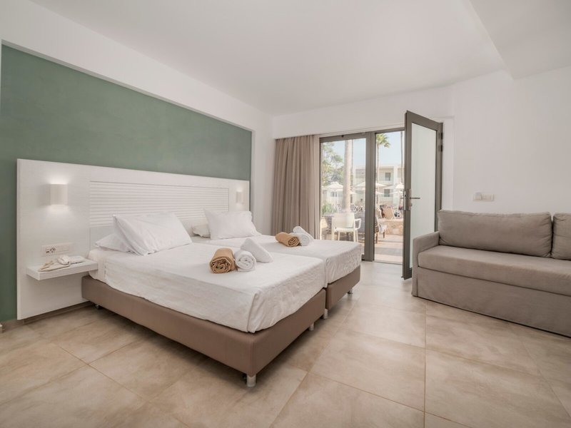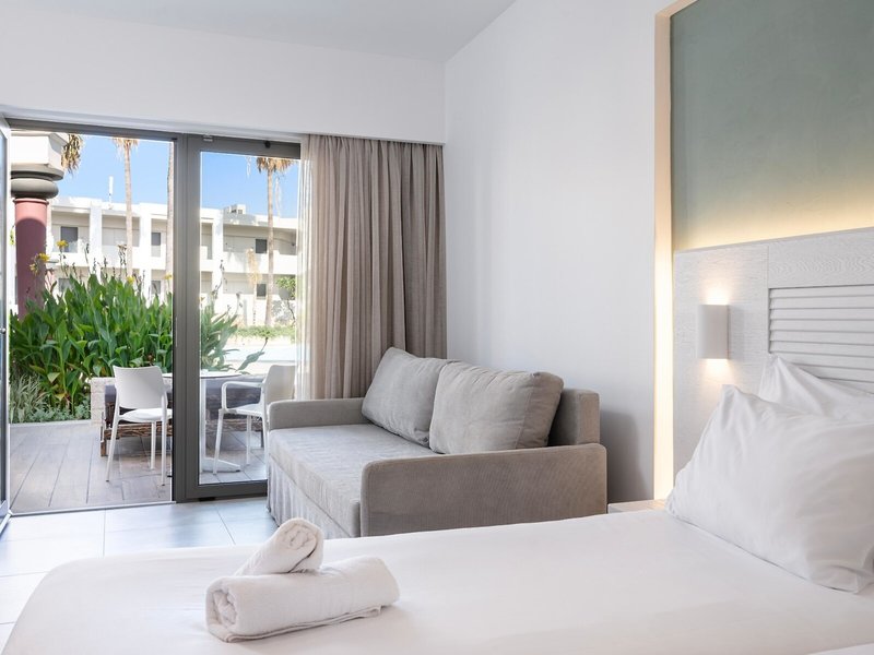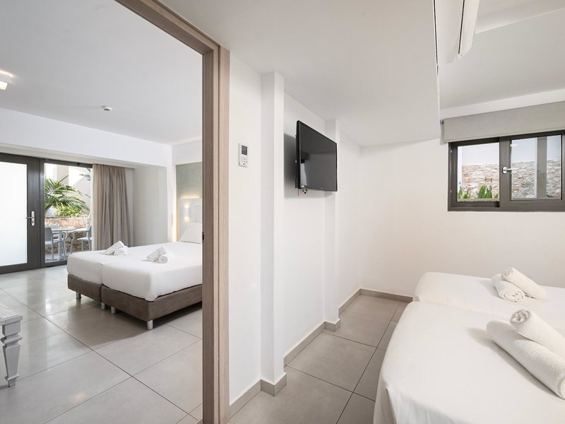 - SUITE VERANDA (SUX2), Suite, Nichtraucherzimmer, Neubau, Gartenseite, Gartenblick, ca. 48 m², letzte Komplettrenovierung 2019, letzte Teilrenovierung 2022, Gesamtanzahl der Räume in diesem Zimmertyp: 1, Aufteilung wie folgt: bestehend aus 2 Doppelzimmern mit Verbindungstür, Wohnzimmer, 2 Schlafzimmer, 2 Einzelbetten, 2 Zustellbetten, Babybett, Moskitonetz, Klimaanlage: ohne Gebühr, individuell regelbar, Fußboden: Fliesenboden, Safe: ohne Gebühr, Kühlschrank: ohne Gebühr, Kaffee-/Teezubereiter, Telefon, Internet: WLAN/WiFi: ohne Gebühr, Fernseher: Flatscreen, im Wohnbereich, im Schlafzimmer, im Kinderzimmer, Roomservice: Sa., So., Mo.-Fr. 08:00 Uhr - 20:00 Uhr, gegen Gebühr, Reinigungsservice: Sa., Mo.-Fr. 09:00 Uhr - 15:00 Uhr, Dusche, Terrasse: mit Liegestühlen