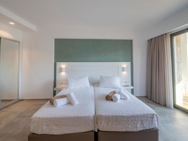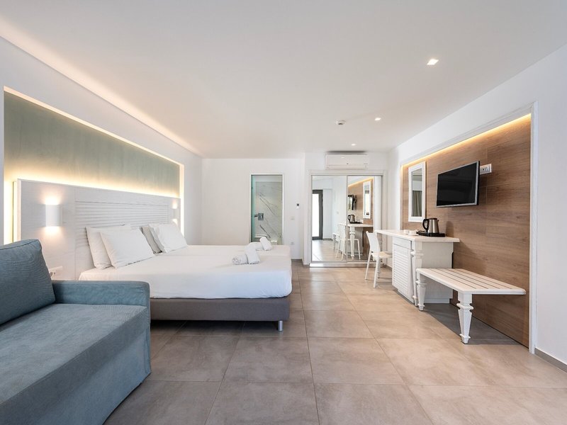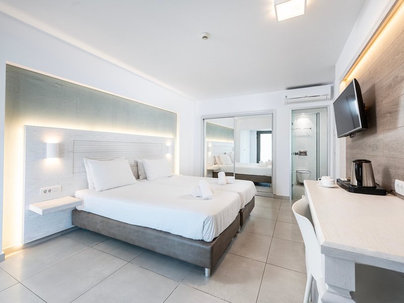 Lage & Umgebung Das Hotel liegt im Ortsteil Lambi, nur durch eine Straße vom Sandstrand mit Kieseln getrennt und ca. 200 m von diesem entfernt. Bis zur lebhaften Kos-Stadt, die zahlreiche Einkaufs- und Unterhaltungsmöglichkeiten bietet, sind es ca. 2 km. Eine regelmäßige Stadtbusverbindung ermöglicht bequeme Ausflüge dorthin.