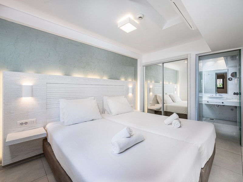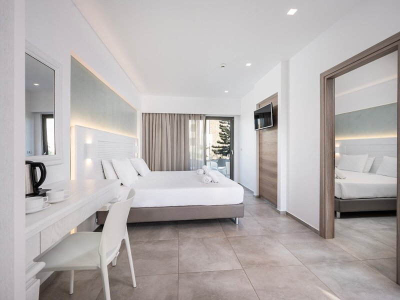 - DELUXE SUITE (SUX1), Suite, Nichtraucherzimmer, Neubau, Gartenblick, ca. 48 m², letzte Komplettrenovierung 2019, letzte Teilrenovierung 2022, Gesamtanzahl der Räume in diesem Zimmertyp: 1, Aufteilung wie folgt: bestehend aus 2 Doppelzimmern mit Verbindungstür, Wohnzimmer, 2 Schlafzimmer, 2 Einzelbetten, 2 Zustellbetten, Klimaanlage: ohne Gebühr, individuell regelbar, Fußboden: Fliesenboden, Safe: ohne Gebühr, Kühlschrank: ohne Gebühr, Kaffee-/Teezubereiter, Internet: WLAN/WiFi: ohne Gebühr, Fernseher: Flatscreen, im Wohnbereich, im Schlafzimmer, im Kinderzimmer, Sat-TV, Reinigungsservice: Sa., Mo.-Fr. 09:00 Uhr - 15:00 Uhr, Badewanne oder Dusche, Dusche, Föhn, Balkon