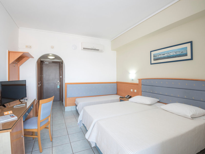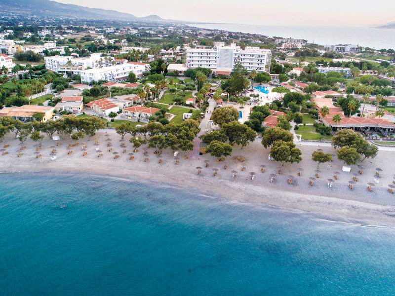 Poloha a okolie: Hotel je ideálny na dovolenku na pláži a nachádza sa v centre mesta Kos, na kamienkovej pláži Lambi, len asi 2 km od mesta Kos a jeho atrakcií. Čas transferu: približne 80 minút.