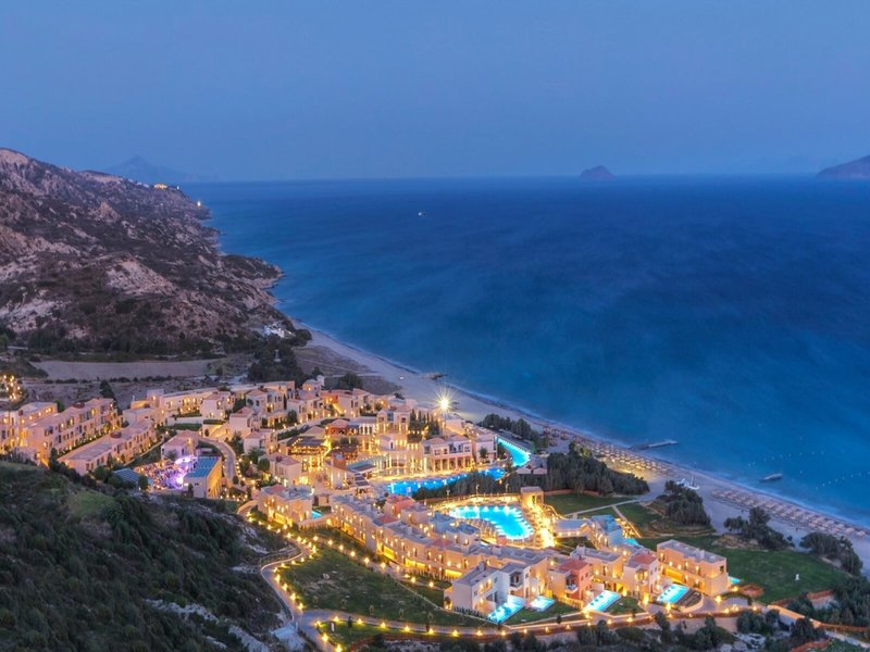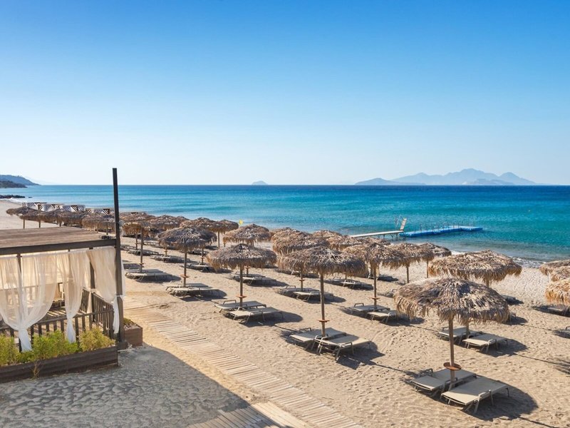 Poloha a okolie: Exkluzívna poloha: Tento luxusný rezort v štýle dediny sa nachádza v Kefalose a je jediným rezortom na približne 800 metrov dlhej pláži. Hostia sa preto môžu tešiť na nerušenú atmosféru a uvoľnenú plážovú atmosféru. Prístup k vode z piesočnatej pláže je čiastočne cez kamenné platne. V centre mesta Kefalos, ktoré je vzdialené približne 10 km, na vás čakajú rôzne nákupné a kultúrne atrakcie.