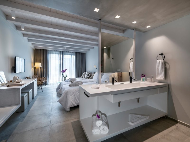 - Double Room Sea Side (DZX3), Doppelzimmer, im Hauptgebäude, Meerseite, ca. 22 m², Gesamtanzahl der Räume in diesem Zimmertyp: 1, Aufteilung wie folgt: 1 Schlafzimmer, 2 Einzelbetten, Babybett: ohne Gebühr, Klimaanlage: ohne Gebühr, zentral gesteuert, Fußboden: Fliesenboden, Safe: gegen Gebühr, Kühlschrank: ohne Gebühr, Telefon, Internet: WLAN/WiFi: ohne Gebühr, Fernseher: Flatscreen, Sat-TV, Reinigungsservice: täglich, ohne Gebühr, Dusche, WC, Föhn, Französischer Balkon