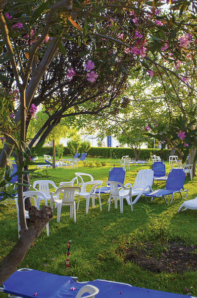 - Kiesstrand: flach abfallend, öffentlich, von der Anlage getrennt durch Promenade, Sonnenschirme (kostenpflichtig), Liegen (kostenpflichtig)
