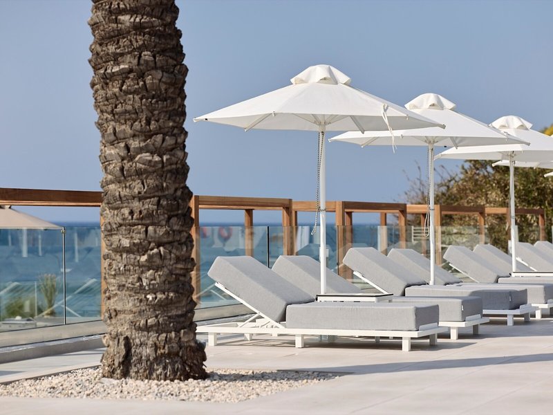 - Junior Suite Seaview Premium (JSM1), Junior Suite, nefajčiarska izba, v prístavbe, morská strana, výhľad na more, výhľad na bazén, cca. 35 m², posledná kompletná rekonštrukcia 2019, celkový počet izieb tohto typu: 2, dispozičné riešenie: pozostáva z 2 izieb, vizuálne oddelených posuvnými dverami, 1 spálňa, 2 samostatné postele (90x200cm), 1 rozkladacia pohovka (140x200cm), detská postieľka: bezplatne, nie je potrebná žiadosť, rezervácia nutná, klimatizácia: bezplatne, individuálne ovládaná, chladenie, teplo, kúrenie: individuálne ovládané, podlaha: dlažba, trezor: bezplatne, pohovka, písací stôl, chladnička: bezplatne, espresso kávovar, kávovar/čajník, rýchlovarná kanvica, minibar: nealkoholické nápoje: bezplatne, voda: bezplatne, dopĺňanie minibaru: denne, telefón, internet: Wi-Fi: bezplatne, televízor: plochá obrazovka, v spálni, nemecké kanály, satelitná TV, upratovacia služba: bezplatne, sprcha, WC, župan: bezplatne za poplatok, papuče: bezplatne, fén, balkón alebo terasa: s posedením