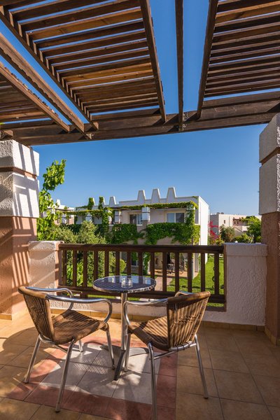 Doppelzimmer: Die Doppelzimmer verfügen über Bad oder Dusche mit WC, eine Klimaanlage, Minikühlschrank, Sat.TV, Telefon, Safe (inklusive) und einen Balkon oder Terrasse mit Gartenblick (D).