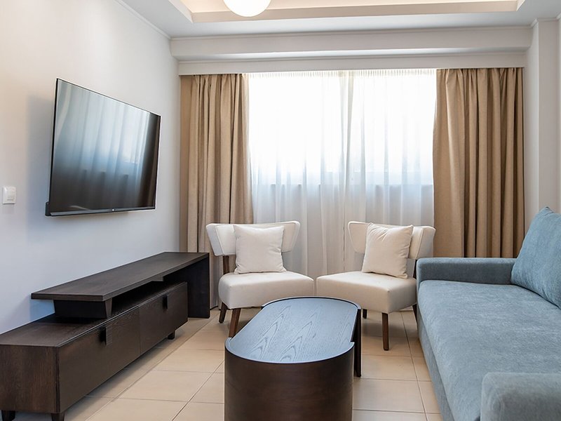 Ubytovanie: Izby sú vybavené kuchynkou a kúpeľňou, správnu klímu v miestnosti zabezpečuje klimatizácia. Vo väčšine ubytovacích jednotiek si hostia môžu vychutnať výhľad na more zo svojho balkóna alebo terasy. Izby majú rozkladaciu pohovku. K dispozícii sú samostatné spálne. Prístelky je možné vyžiadať. K dispozícii je aj trezor a písací stôl. K dispozícii je tiež chladnička, minichladnička a príslušenstvo na prípravu čaju/kávy. Pre väčšie pohodlie hostí je k dispozícii súprava na žehlenie. Okrem toho je k dispozícii telefón, TV so satelitným/káblovým príjmom a WiFi (bez poplatku). K ďalšiemu vybaveniu patria papuče. Kúpeľne sú vybavené sprchovacím kútom a vaňou. Na každodenné použitie je k dispozícii sušič vlasov, župany a telefón. Ako zvláštnosť si hostia môžu vychutnať kozmetické produkty a výber uterákov v kúpeľniach. Rezervovať je možné aj bezbariérové izby s bezbariérovými kúpeľňami. Dom ponúka rodinné a nefajčiarske izby.