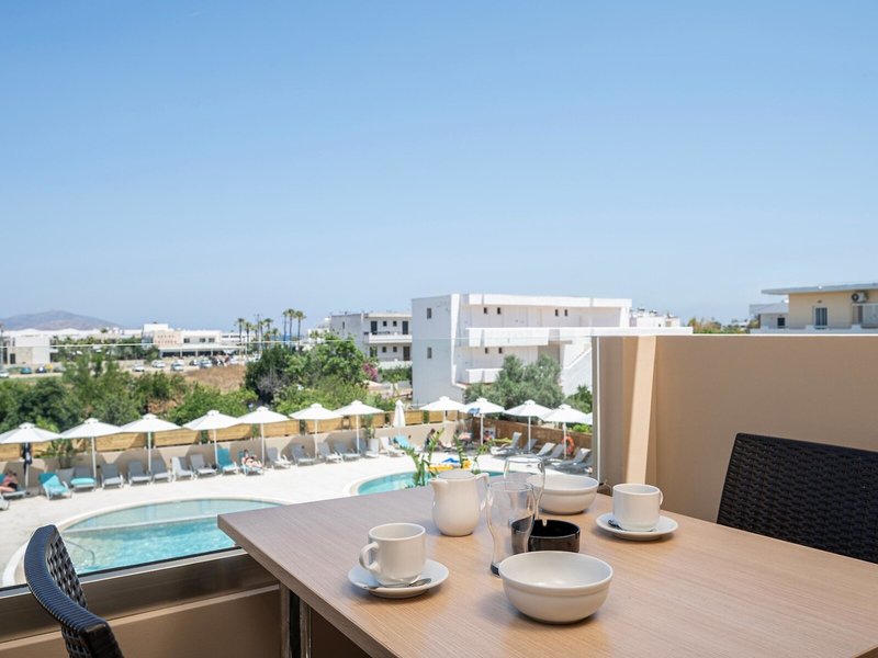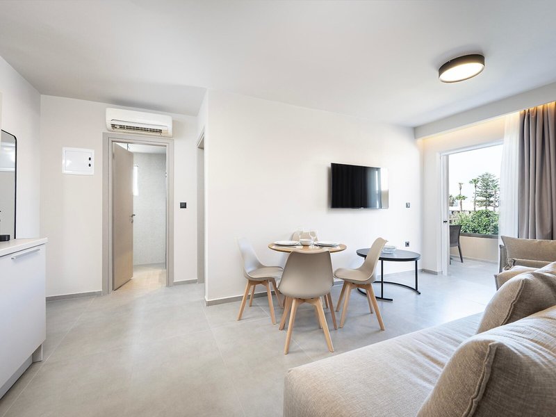 - One-bedroom apartments (APX1), Appartement, Nichtraucherzimmer, im Hauptgebäude, Poolblick, Gartenblick, ca. 31 - 33 m², letzte Komplettrenovierung 2025, Gesamtanzahl der Räume in diesem Zimmertyp: 2, Aufteilung wie folgt: Wohnzimmer, 1 Schlafzimmer, 1 Doppelbett, 1 Schlafsofa, Babybett: ohne Gebühr, Klimaanlage: ohne Gebühr, Mai - Oktober, Fußboden: Fliesenboden, Safe: ohne Gebühr, Sofa, Schreibtisch, Kochnische, Kühlschrank, Kochplatte, Mikrowelle, Wasserkocher, Internet: WLAN/WiFi: ohne Gebühr, Fernseher: Flatscreen, im Wohnbereich, Dusche, WC, Föhn, Balkon: mit Sitzgelegenheit