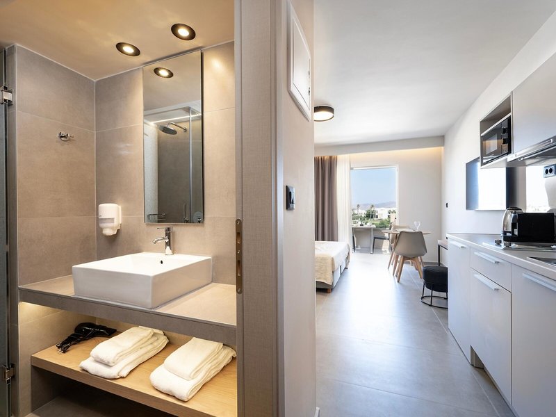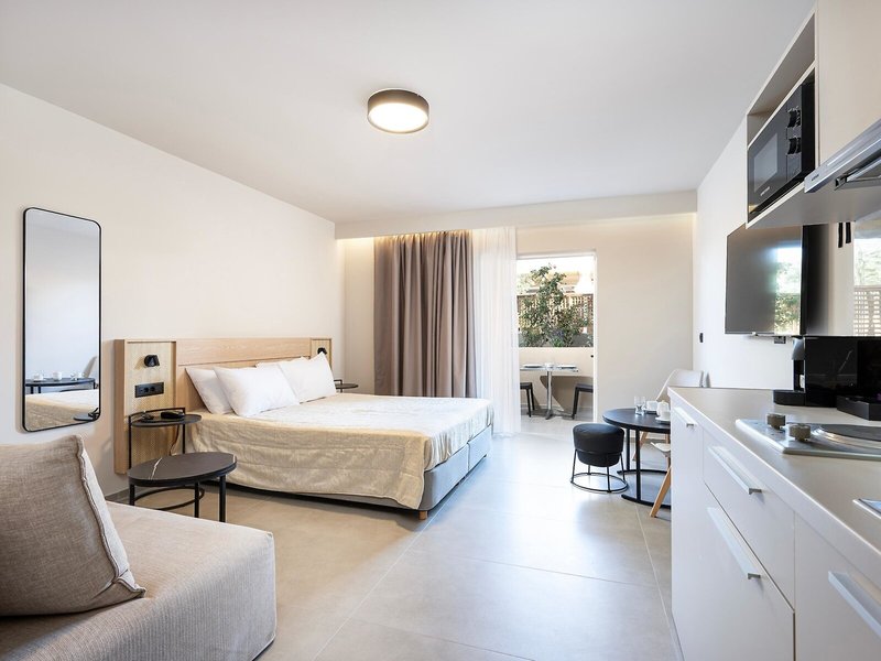 - Studios (STX1), Appartement, Nichtraucherzimmer, im Hauptgebäude, Poolblick, Gartenblick, ca. 21 - 23 m², letzte Komplettrenovierung 2025, Gesamtanzahl der Räume in diesem Zimmertyp: 1, Aufteilung wie folgt: kombiniertes Wohn-/Schlafzimmer, 1 Doppelbett, Babybett: ohne Gebühr, Klimaanlage: ohne Gebühr, Fußboden: Fliesenboden, Safe: ohne Gebühr, Sofa, Schreibtisch, Kochnische, Kühlschrank, Kochplatte, Mikrowelle, Wasserkocher, Internet: WLAN/WiFi: ohne Gebühr, Fernseher: Flatscreen, im Schlafzimmer, Dusche, WC, Föhn, Balkon: mit Sitzgelegenheit
