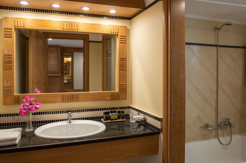 Vybavenie: Hotelový komplex ponúka zmes gréckeho šarmu a modernej atmosféry. Tento 5-hviezdičkový rezort pozostáva zo 455 izieb rozmiestnených v hlavnej budove s výťahom a niekoľkých budovách v štýle bungalovov. Ponúka vstupnú halu s 24-hodinovou recepciou a posedením, reštaurácie (gril reštaurácia, reštaurácia s morskými plodmi a panázijská reštaurácia – rezervácia nutná, v závislosti od dostupnosti, palacinkáreň a pizza so sebou na pláži), sedem barov, minimarket, kiosk, butik a nočný klub (nie je zahrnutý v all inclusive balíčku). Vonkajší areál sa môže pochváliť bazénovým komplexom s piatimi sladkovodnými bazénmi, jedným bazénom so slanou vodou, detským bazénom a aquaparkom so šmykľavkami (otvorený od 10:00 do 18:00/pre deti od 6 rokov), ako aj barom pri bazéne/na pláži. Slnečná terasa je vybavená ležadlami a slnečníkmi, ktoré sú zahrnuté v cene pri bazéne aj na pláži. Wi-Fi je k dispozícii v celom hotelovom komplexe.