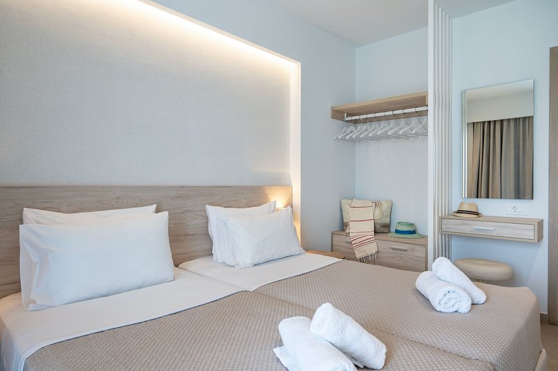 Ausstattung: Das kleine familiäre Hotel, welches bei Stammgästen sehr beliebt ist, verfügt über 41 Zimmer, welche auf drei Etagen aufgeteilt wurden. Die Anlage wurde in 2023 vollständig renoviert und wurde ausgestattet mit einer Lobby, in welcher sich die 24-Stunden-Rezeption befindet. Zur weiteren Einrichtung des Hotels gehört das "Vasilis " à la carte-Restaurant, sowie eine Pool-/Snackbar. Im Außenbereich ist ein Pool mit Sonnenliegen und Sonnenschirmen, sowie ein Kinderbecken vorhanden. Am Strand stehen kostenpflichtige Sonnenliegen zur Verfügung. Zur weiteren Annehmlichkeiten gehören ein Minimarkt und ein Souvenirshop. Wi-Fi ist in der gesamten Anlage kostenfrei verfügbar.