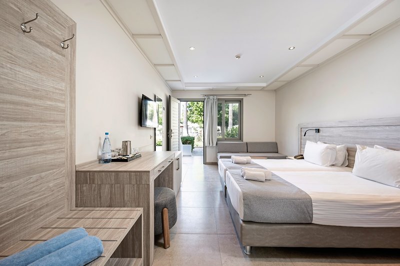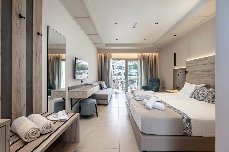 - 31-35 m2, rodiny, so spojovacími dverami, superior, výhľad na bazén, moskytiéry, 1 samostatná spálňa, kombinovaná obývacia izba/spálňa, manželské postele (1 queen size alebo 1 2 oddelené), 1 kúpeľňa, sprcha alebo vaňa, sušič vlasov, kozmetika zrkadlo, klimatizácia, mini chladnička, trezor (za poplatok), TV (satelitná TV), rýchlovarná kanvica, káva/čaj, balkón alebo terasa (zariadené), voda na izbe pri príchode