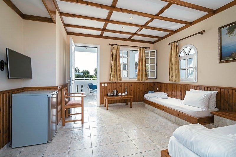 - 21-25 m2, dvojlôžková, siete proti komárom, vaňa, sušič vlasov, kozmetické zrkadlo, klimatizácia, mini chladnička, trezor (za poplatok), TV (satelitná TV), rýchlovarná kanvica, káva/čaj, balkón alebo terasa (zariadené), na izbe pri príchode Voda