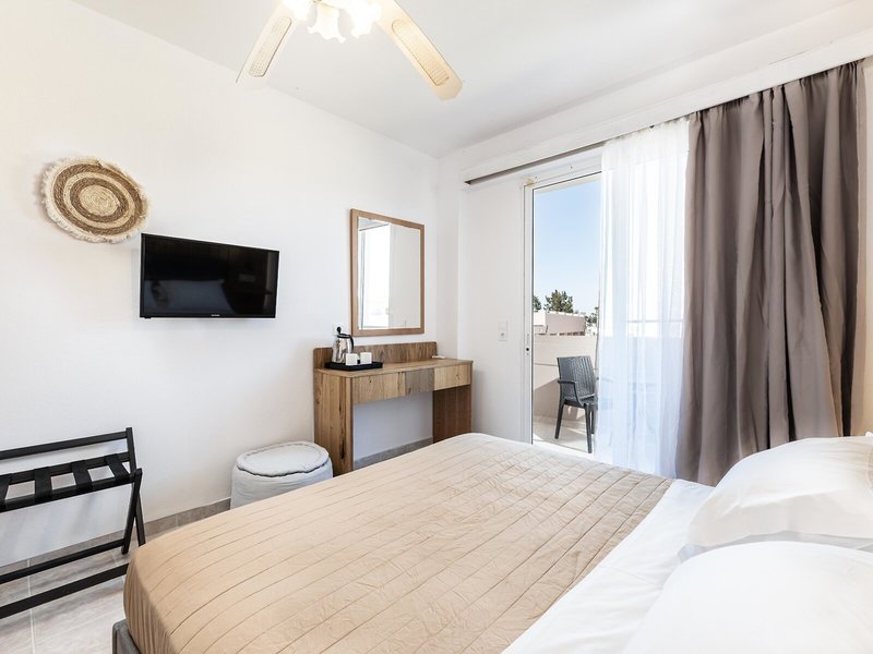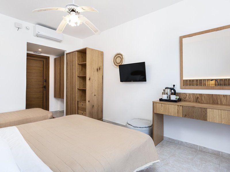 Poloha a okolie Pokojná poloha, len pár krokov od dlhej pláže s jemným pieskom. V okolí sú obchody, taverny a autobusová zastávka.