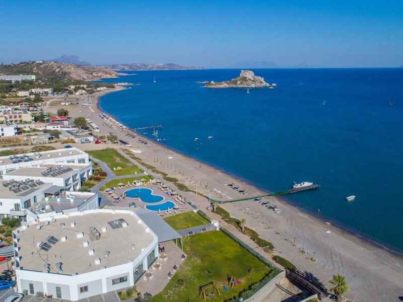 Lage & Umgebung Das Hotel liegt, nur durch die Promenade getrennt, am Strand. Der Flughafen Kos kann nach ca. 14 km erreicht werden.