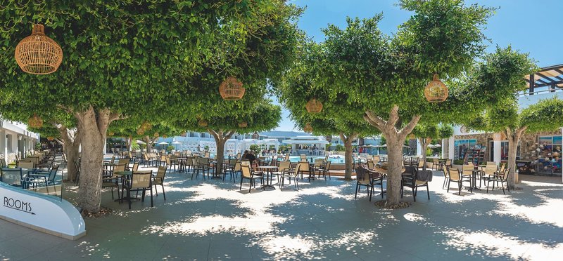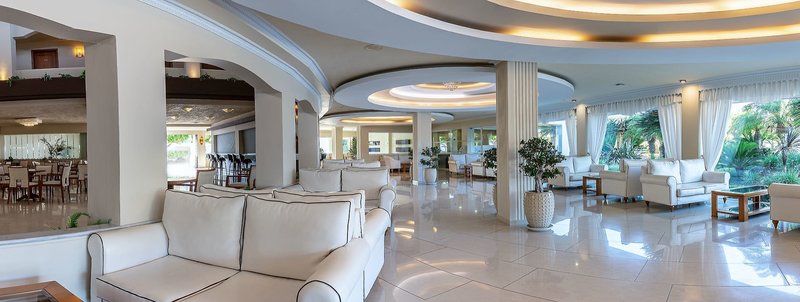 Ausstattung: Die sehr gepflegte Anlage überzeugt mit ihrem vielfältigen Angebot und hervorragendem Service. Neben insgesamt 239 Zimmer und Suiten verfügt das Hotel über eine Empfangshalle mit 24-Stunden-Rezeption, Sat.-TV-Raum, Hauptrestaurant mit Terrasse, italienisches Restaurant, griechische Taverne (Getränke hier nicht inklusive), Bar, Cocktailbar, Waffel-Shop, Minimarkt und Boutique. Wi-Fi ist in der gesamten Hotelanlage inklusive.
