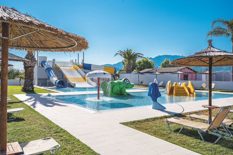 V krásne upravených záhradách ponúkajú osvieženie dva sladkovodné bazény, zatiaľ čo slnečné terasy s dvoma barmi pri bazéne vás pozývajú k relaxu. Lehátka a slnečníky sú k dispozícii pri bazéne a na pláži zadarmo a plážové osušky sú poskytované zadarmo. Tieto je možné bezplatne meniť každé štyri dni; skoršia výmena je možná za poplatok. K dispozícii je aj aquapark s tromi toboganmi pre všetky vekové kategórie.