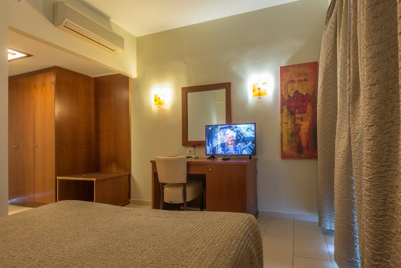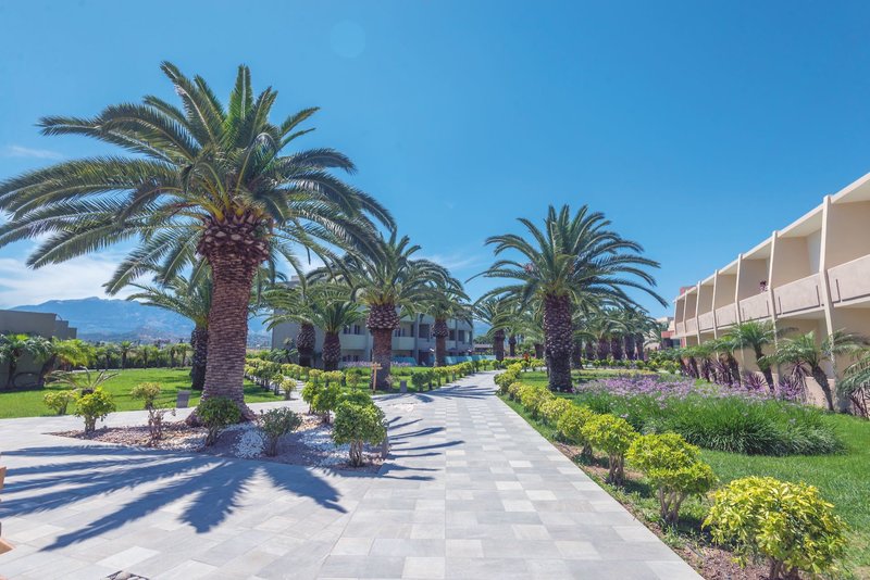 Vybavenie: Tento starostlivo udržiavaný rezort ohromí svojou rozmanitou ponukou a vynikajúcimi službami. Okrem celkovo 239 izieb a apartmánov ponúka hotel vstupnú halu s 24-hodinovou recepciou, salónik so satelitnou TV, hlavnú reštauráciu s terasou, taliansku reštauráciu, grécku tavernu (nápoje nie sú zahrnuté v cene), bar, koktailový bar, vaflovačku, minimarket a butik. Wi-Fi je k dispozícii v celom hoteli zadarmo.