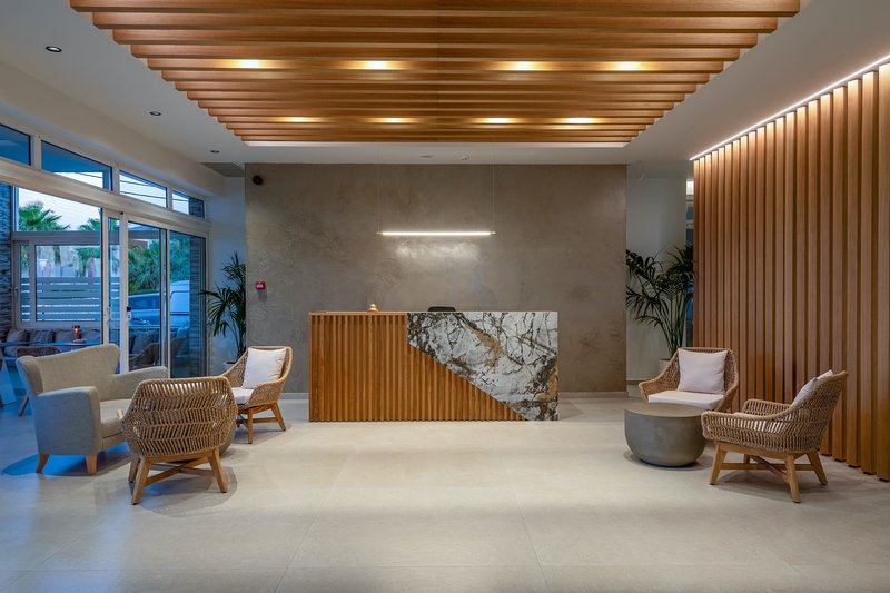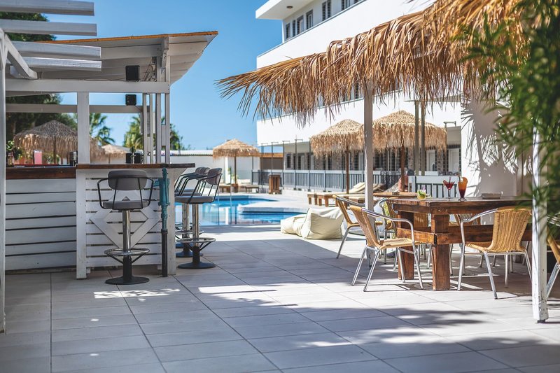 Ausstattung: Das als schauinsland-reisen-Original buchbare Hotel präsentiert sich mit viel Herz und Liebe zum Detail. Zusammen mit der überaus herzlichen und hilfsbereiten Art der Inhaberin und ihrem ebenso herzlichen Team steht einem typisch griechischen Urlaub "wie bei Freunden" nichts im Wege. Gastfreundschaft wird hier gelebt! In dem kleinen Hotel in modernem Design verteilen sich die nur 86 komplett renovierten Zimmern auf 2 Stockwerke im Haupthaus und im zum Sommer 2025 neu gebauten Nebengebäude mit Sharingpool. Im Eingangsbereich befindet sich die klimatisierte Rezeption, Lobby, Bar mit zum Sommer 2025 neu gestalteten Terrasse und hier befindet sich die Sat.-TV Ecke. Wi-Fi ist in der Lobby und den Zimmern, im Restaurant und am Pool kostenfrei verfügbar. Im kleinen, liebevoll angelegten Garten befindet sich der ebenfalls renovierte Swimmingpool, die Sonnenterrasse mit Liegen und Schirmen und die Pool-/Snackbar. Im Freizeitraum stehen Darts und Billard gegen Gebühr zur Verfügung.