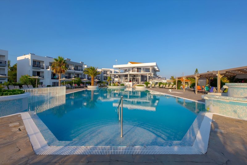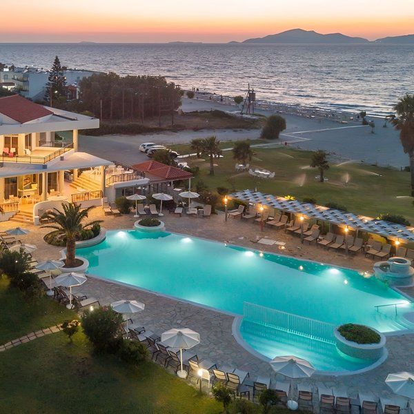 Vybavenie: Tento krásny komplex, čiastočne zrekonštruovaný v roku 2025 (vhodný pre hostí od 5 rokov), má 64 izieb rozmiestnených v hlavnej budove a troch prístavbách. Ponúka vstupnú halu s recepciou, bar a reštauráciu. Wi-Fi je k dispozícii v celom komplexe a na pláži (v cene). Vonku sa nachádza bazén (otvorený od 10:00 do 18:00) so slnečnou terasou a barom pri bazéne. Lehátka a slnečníky sú pri bazéne k dispozícii zadarmo; na pláži sú k dispozícii za poplatok.