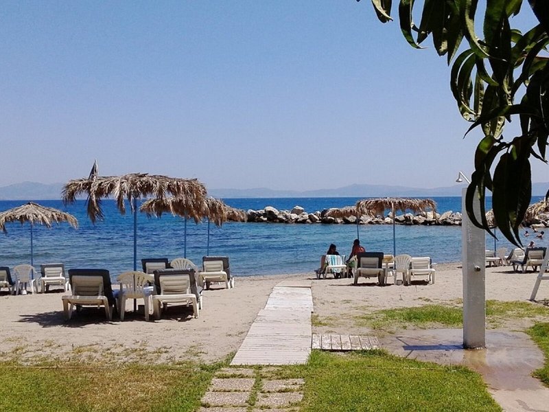 Lage & Umgebung Das Aparthotel liegt im Gebiet Psalidi, direkt gegenüber vom Strand (30 m) und nur rund 1,5 km von Kos-Stadt entfernt. Die nächsten Anbindungen an die öffentlichen Verkehrsmittel sind ca. 40 m weit weg, zum internationalen Flughafen Kos sind es rund 25 km.