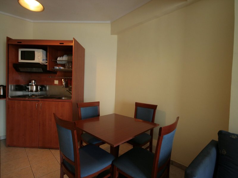 Ubytovanie: Klimatizácia zabezpečuje príjemnú vnútornú klímu. Väčšina izieb má balkón. Izby sú vybavené manželskou posteľou alebo rozkladacou pohovkou. Prístelky je možné požiadať. Trezor poskytuje najlepšiu ochranu vecí hostí. K dispozícii je plne vybavený kuchynský kút s chladničkou, minichladničkou, mikrovlnnou rúrou a zariadením na prípravu čaju/kávy. Okrem toho je k dispozícii telefón, TV so satelitnými/káblovými programami a Wi-Fi (bezplatné). Kúpeľňa so sprchovacím kútom a vaňou obsahuje aj sušič vlasov. Ubytovanie ponúka rodinné a nefajčiarske izby.
