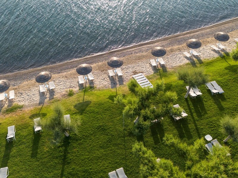 - Strand: Sand, Kies, Badeschuhe empfehlenswert, Liegen, Sonnenschirme