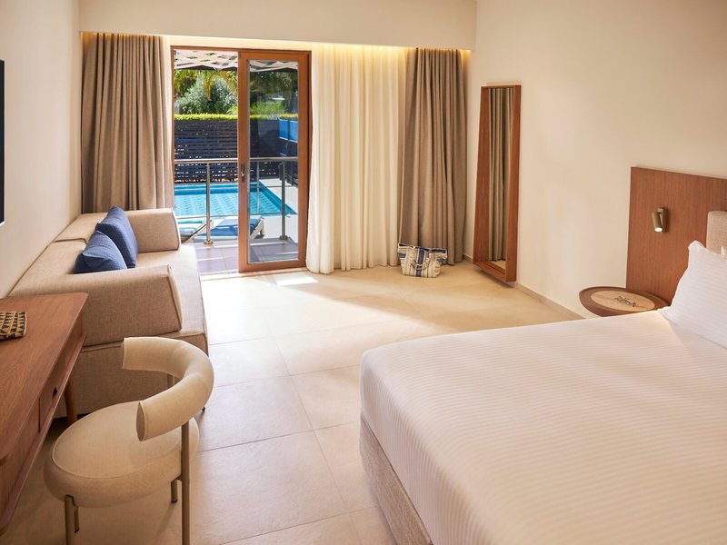 - Junior Suite private pool (JSX2), Juniorsuite, Gartenblick, ca. 32 m², letzte Komplettrenovierung 2024, Gesamtanzahl der Räume in diesem Zimmertyp: 1, Aufteilung wie folgt: kombiniertes Wohn-/Schlafzimmer, 1 Schlafsofa, Klimaanlage: individuell regelbar, Heizung: individuell regelbar, Fußboden: Fliesenboden, Safe: ohne Gebühr, Sitzecke, Kaffee-/Teezubereiter, Minibar, Telefon, Internet: WLAN/WiFi: ohne Gebühr, Fernseher: im Schlafzimmer, Sat-TV, Radio, Roomservice: gegen Gebühr, Reinigungsservice: täglich, Dusche, WC, Bademantel: ohne Gebühr, Slipper: ohne Gebühr, Föhn, Terrasse: mit Sitzgelegenheit, mit Private Pool