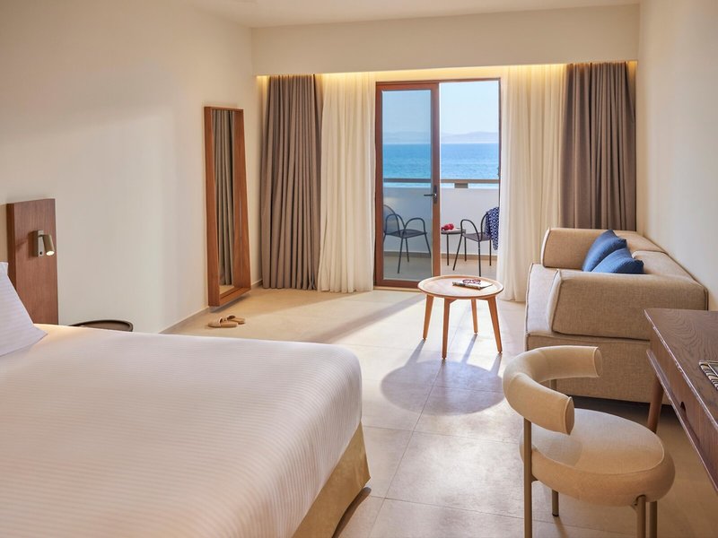 - Junior Suite sea view (JSM1), Juniorsuite, Meerblick, ca. 32 m², letzte Komplettrenovierung 2024, Gesamtanzahl der Räume in diesem Zimmertyp: 1, Aufteilung wie folgt: kombiniertes Wohn-/Schlafzimmer, 1 Schlafsofa, Klimaanlage: individuell regelbar, Heizung: individuell regelbar, Fußboden: Fliesenboden, Safe: ohne Gebühr, Sitzecke, Kaffee-/Teezubereiter, Minibar, Telefon, Internet: WLAN/WiFi: ohne Gebühr, Fernseher: im Schlafzimmer, Sat-TV, Radio, Roomservice: gegen Gebühr, Reinigungsservice: täglich, Dusche, WC, Bademantel: ohne Gebühr, Slipper: ohne Gebühr, Föhn, Balkon oder Terrasse: mit Sitzgelegenheit