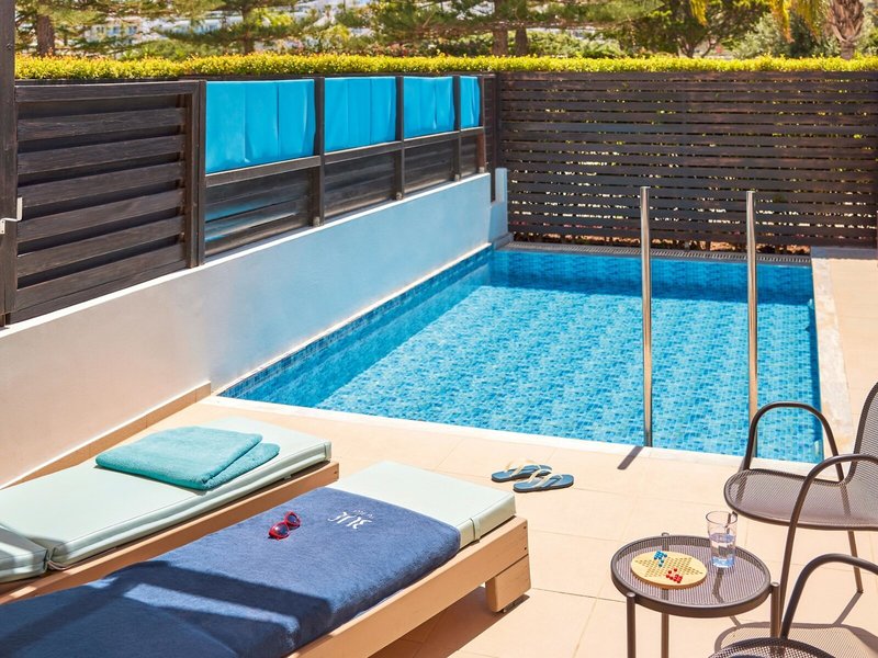 - Junior Suite sea view private pool (JSM3), Juniorsuite, Meerblick, ca. 32 m², letzte Komplettrenovierung 2024, Gesamtanzahl der Räume in diesem Zimmertyp: 1, Aufteilung wie folgt: kombiniertes Wohn-/Schlafzimmer, 1 Schlafsofa, Klimaanlage: individuell regelbar, Heizung: individuell regelbar, Safe: ohne Gebühr, Sitzecke, Kaffee-/Teezubereiter, Minibar, Telefon, Internet: WLAN/WiFi: ohne Gebühr, Fernseher: Sat-TV, Radio, Roomservice: gegen Gebühr, Dusche, WC, Bademantel: ohne Gebühr, Slipper: ohne Gebühr, Föhn, Terrasse: mit Sitzgelegenheit, mit Private Pool