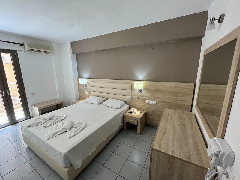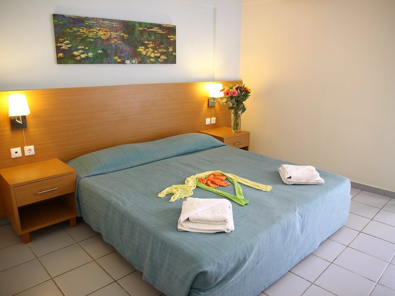 Vaše ubytovanie: Izby sú vybavené klimatizáciou a kúrením. Väčšina izieb má balkón. Izby majú manželskú posteľ alebo rozkladaciu pohovku. K dispozícii sú samostatné spálne. Prístelky je možné vyžiadať. K dispozícii je aj trezor, minibar a písací stôl. Kuchynka je vybavená chladničkou, minichladničkou a zariadením na prípravu čaju/kávy. Telefón, televízor so satelitným príjmom a možnosťou platených programov, rádio a WiFi poskytujú najlepší komfort počas dovolenky. K vybaveniu izby patria papuče. Kúpeľne sú vybavené sprchovacím kútom, vaňou a bidetom. K dispozícii je sušič vlasov a župany na každodenné použitie. Ako špeciálne vybavenie si hostia môžu v kúpeľniach vychutnať kozmetické produkty. Hotel ponúka rodinné a nefajčiarske izby.