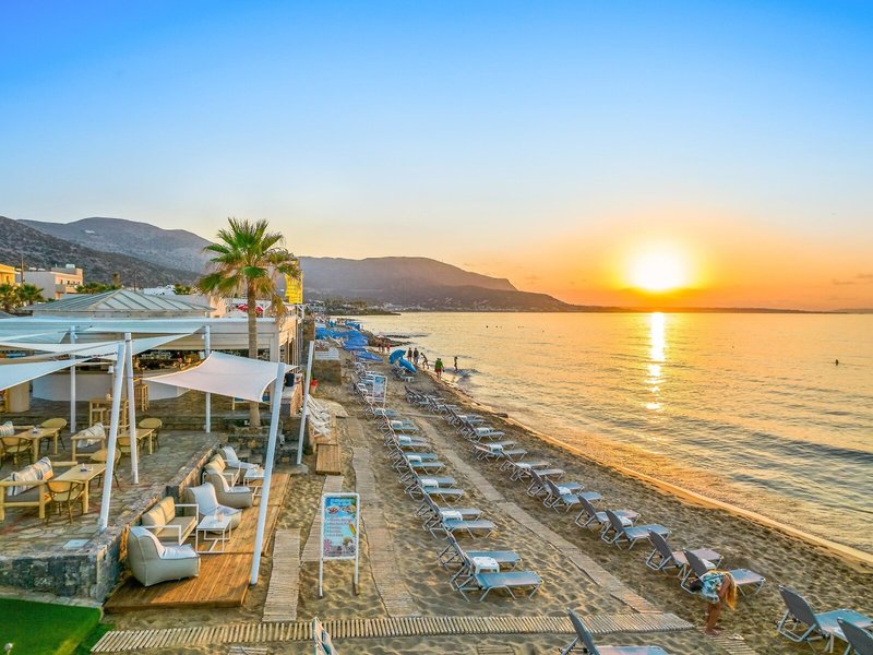 Poloha a okolie Hotel Aelos Beach sa nachádza priamo na piesočnatej pláži medzi Malia a Stalis. Obchody a reštaurácie sú v bezprostrednej blízkosti. Centrá miest Malia a Stalis sú v pešej vzdialenosti. Najbližšia autobusová zastávka sa nachádza asi 100 m od hotela a letisko Heraklion je vzdialené asi 32 km.