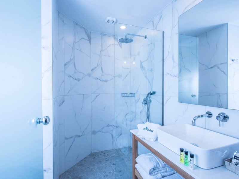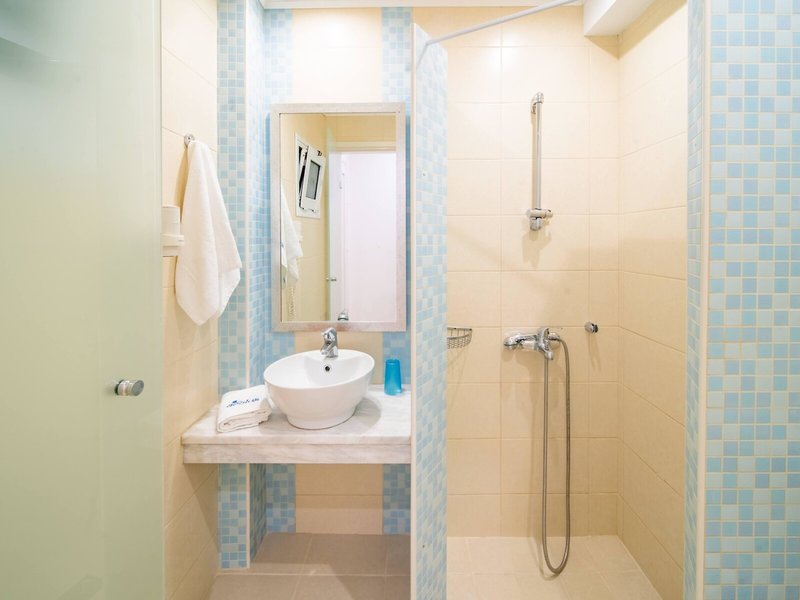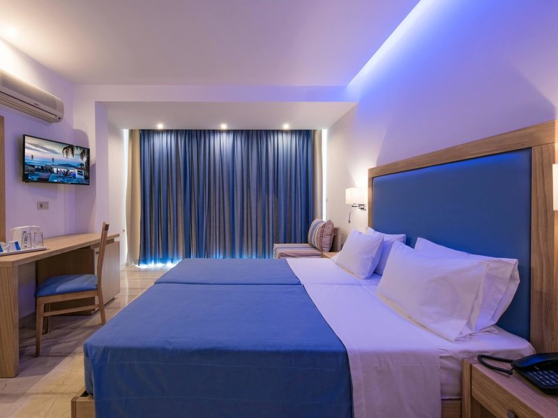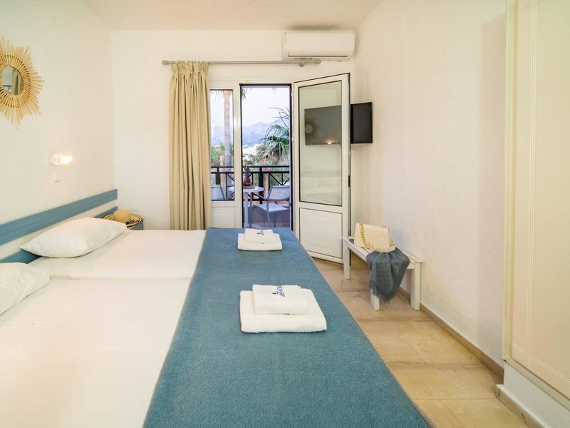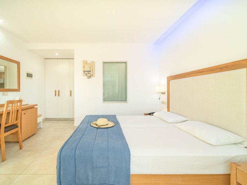 - Standard Double Side Sea View (DZX3), v hlavnej budove, bočný výhľad na more, cca 18 m², posledná kompletná rekonštrukcia v roku 2019, celkový počet izieb v tomto type izby: 8, 2 samostatné postele, detská postieľka: bez poplatku, nutná požiadavka a rezervácia, klimatizácia: na noc cca 7 EUR, individuálne nastaviteľná, podlaha: dlažba, trezor: cca 15 EUR za týždeň, písací stôl, žehlička, chladnička, rýchlovarná kanvica, telefón, internet: WLAN/WiFi, TV: plochá obrazovka, SAT TV, sprcha, fén, balkón alebo terasa: s posedením