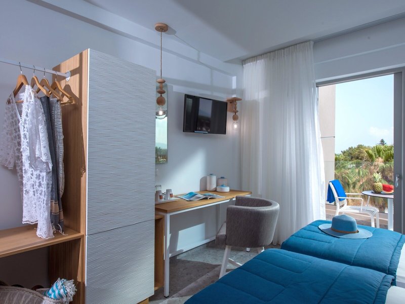 - Standard Double Side Sea View (DZX3), im Hauptgebäude, seitlicher Meerblick, ca. 18 m², letzte Komplettrenovierung 2019, Gesamtanzahl der Räume in diesem Zimmertyp: 8, 2 Einzelbetten, Babybett: ohne Gebühr, Anfrage & Reservierung notwendig, Klimaanlage: pro Nacht ca. 7 EUR, individuell regelbar, Fußboden: Fliesenboden, Safe: pro Woche ca. 15 EUR, Schreibtisch, Bügeleisen, Kühlschrank, Wasserkocher, Telefon, Internet: WLAN/WiFi, Fernseher: Flatscreen, Sat-TV, Dusche, Föhn, Balkon oder Terrasse: mit Sitzgelegenheit