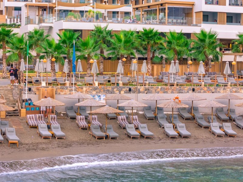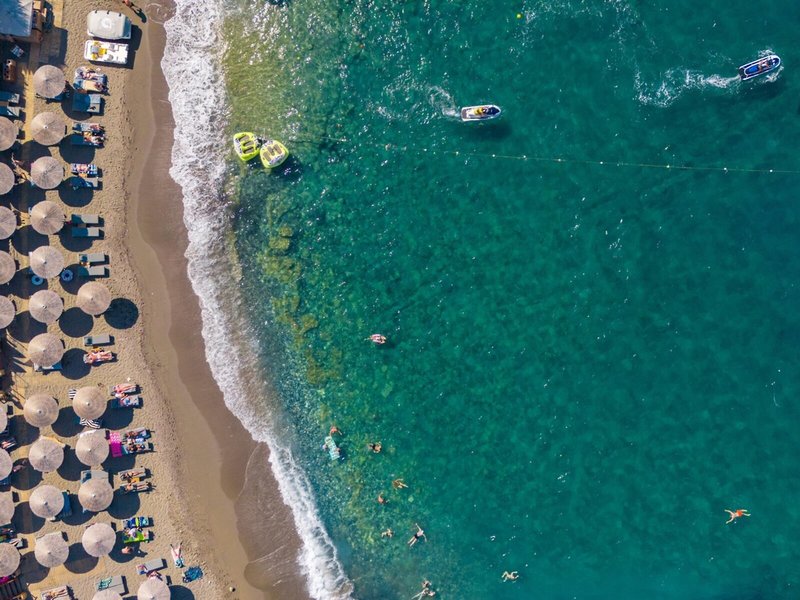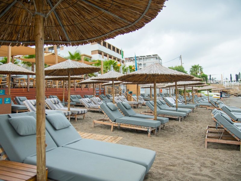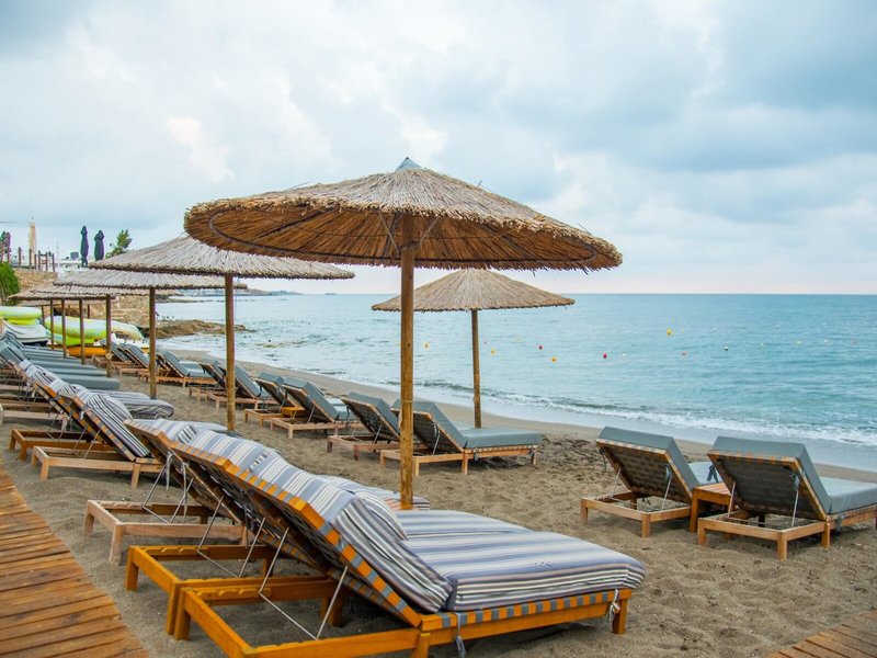 - Pláž: piesková, kamienková, verejná s vlastnou hotelovou časťou, ležadlá, slnečníky