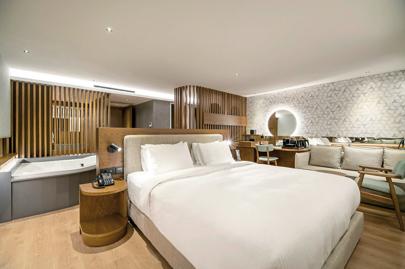 - 26-30 m², dvojlôžková, výhľad na mesto, kombinovaná obývacia izba/spálňa, 1 manželská posteľ (king size), 1 rozkladacia pohovka, 1 kúpeľňa, sprcha, bezbariérová sprcha, WC, župan, papuče, sušič vlasov, kozmetické zrkadlo, klimatizácia, minibar za poplatok, trezor, 1 TV (satelitná TV), espresso kávovar, káva/čaj, balkón alebo terasa (zariadené), ponorný bazén, vankúšové menu, vysoká kvalita Predmety do kúpeľne