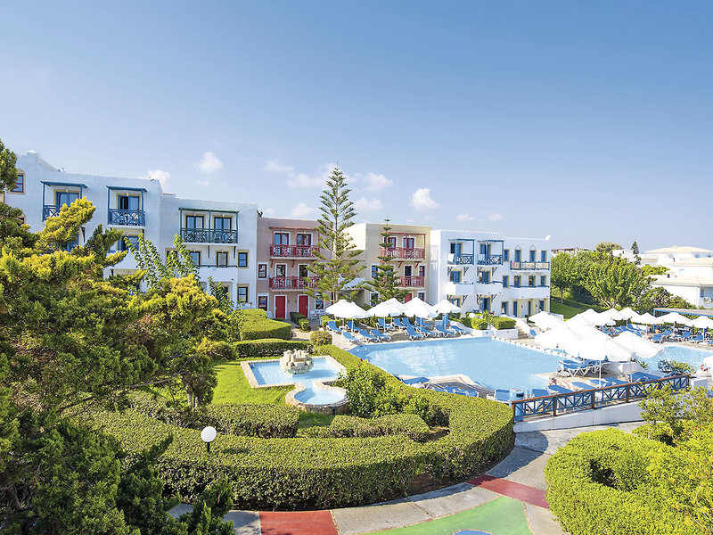 Vybavenie: Dobre udržiavaný dovolenkový komplex pozostáva z hlavnej budovy a niekoľkých 2-poschodových budov bungalovov s veľkou, priestrannou záhradou a priamym prístupom na pláž. Krajina pri bazéne (5 bazénov s morskou vodou), tobogány, slnečné terasy, ležadlá, slnečníky, plážové osušky pri bazéne/pláži, 5 barov pri bazéne, kútik s pizzou, plážový bar. Lobby s recepciou, WiFi, salónik, bar, terasa, hlavná reštaurácia s vonkajším priestorom a nádhernou panoramatickou terasou, 2 tematické reštaurácie. Obchod so suvenírmi, rad obchodíkov, minimarket, butik, klenotníctvo, kaderníctvo. Národná kategória: 4 hviezdičky, 13 budov, 2 poschodia, 344 izieb.