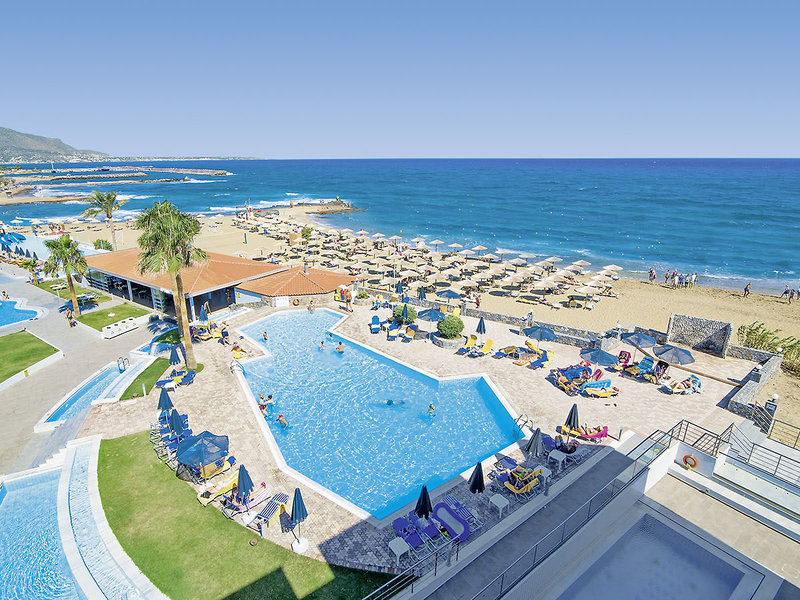 Lage: Direkt am schönen, weitläufigen Sandstrand von Malia. Das lebhafte Zentrum mit Einkaufs- und Unterhaltungsmöglichkeiten ist ca. 2 km entfernt.