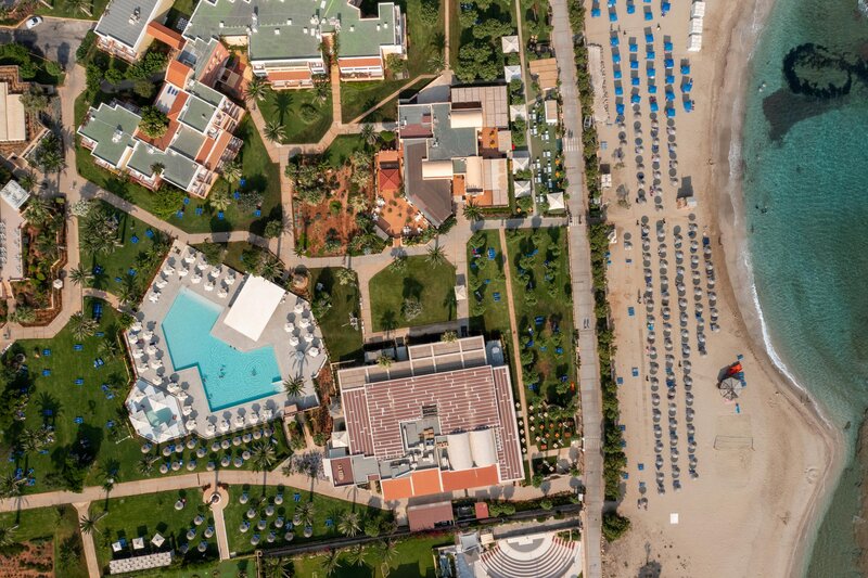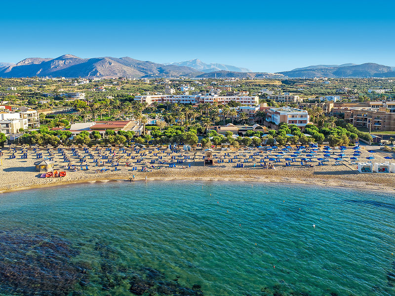 Poloha: V dovolenkovej oblasti Anissaras, priamo na idylickej piesočnatej/kamienkovej pláži, na vás čaká hotel na fantastickom mieste. V bezprostrednej blízkosti nájdete množstvo nákupných a zábavných možností, ktoré poskytujú spestrenie a relax. Živé centrum mesta Hersonissos s množstvom reštaurácií, barov a voľnočasových aktivít je vzdialené približne 4 km. Autobusová zastávka sa nachádza asi 800 metrov od hotela a ponúka pohodlné spojenie do okolia.
