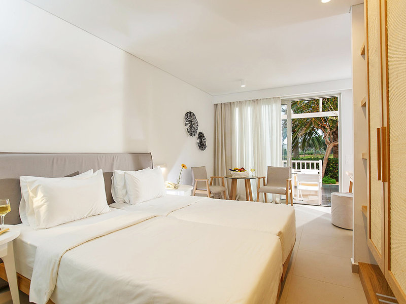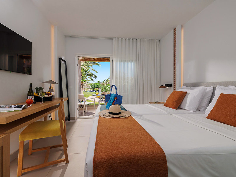 Superior-Komfort-Doppelzimmer (DSG, ca. 21-28 qm), renoviert, Klima, Minibar (tägl. gefüllt), TV, WLAN, Mietsafe. Dusche, WC, Föhn, Bademäntel, Slipper. Balk./Terr., Gartenblick, wahlw. mit Meerblick (DSS). Max. 3E, zur Alleinnutzung (EZG, EZS) buchbar