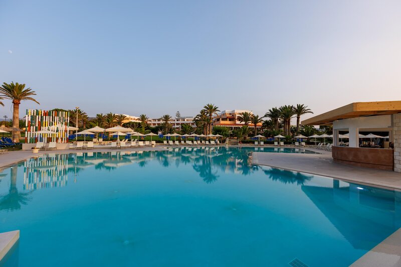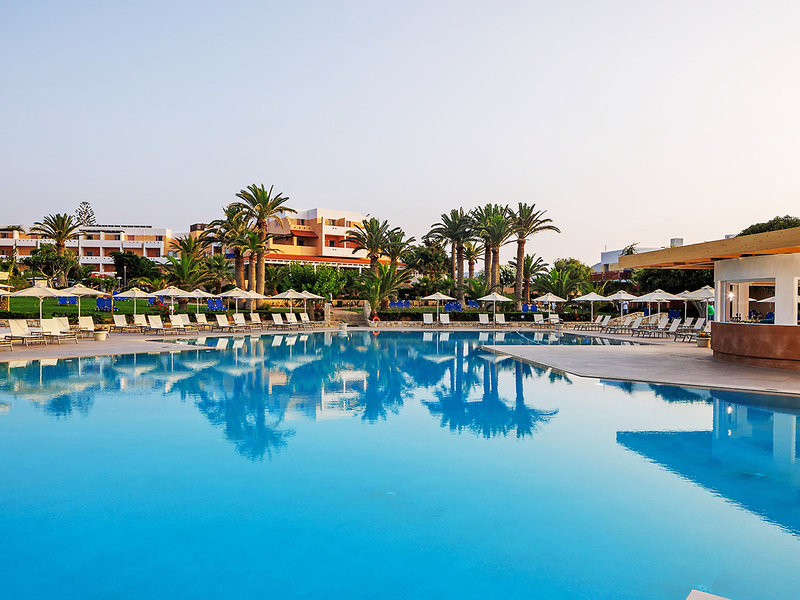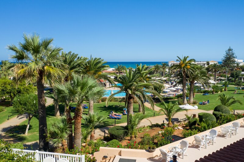 Vybavenie: Hotelový komplex, pozostávajúci z hlavnej budovy a 2-poschodovej budovy, obklopený krásnou a udržiavanou záhradou. Bazén so slnečnou terasou, samostatný detský bazén, slnečníky, ležadlá/osušky pri bazéne a na pláži v cene, bar pri bazéne. Recepcia, lobby, WiFi, bar, bufetová reštaurácia s vonkajšou terasou, záhradná reštaurácia, 3 špecializované reštaurácie. Vináreň (za poplatok). Malý obchodík. Hodnotenie štátu: 4 hviezdičky, 315 izieb.