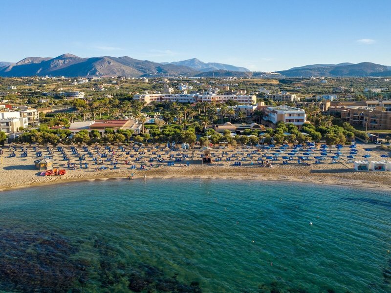 Poloha a okolie Priamo na mierne sa zvažujúcej 2,5 km dlhej piesočnato/kamienkovej pláži. Cca 4 km do Chersonissosu, dobré autobusové spojenie, zastávka blízko hotela. Bary, kaviarne, taverny a rôzne nákupné možnosti v okolí.