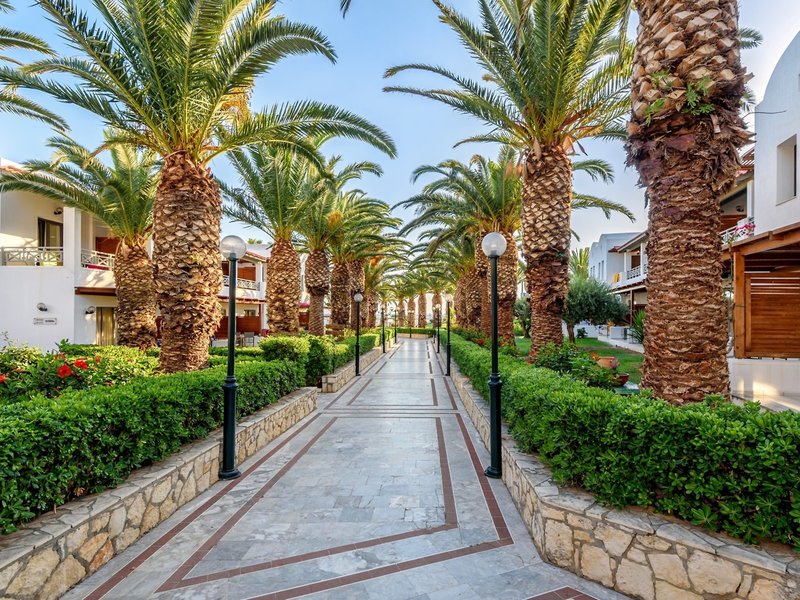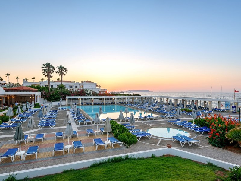 Poloha a okolie Hotelový komplex sa nachádza v tesnej blízkosti obľúbeného rušného dovolenkového strediska Hersonissos. Tento rodinný hotel má vlastný úsek mierne kamienkovej piesočnatej pláže, ktorá bola niekoľkokrát ocenená Modrou vlajkou EÚ za svoju krištáľovo čistú a čistú vodu. V centre Hersonissosu, vzdialenom približne 3 km, hostia nájdu množstvo reštaurácií, barov, krčiem, diskoték, obchodov a pamiatok. Medzinárodné letisko Nikosa Kazantzakisa je od rezortu vzdialené približne 22 km.