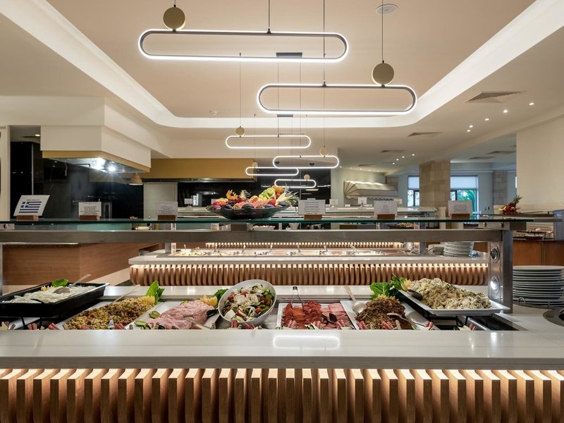 - Reštaurácia AMBROSIA: kuchyňa: grécka, medzinárodná, talianska, stredomorská, diétna kuchyňa: bez poplatku, v cene all inclusive, vyžaduje sa vyžiadanie a rezervácia, bezlepkové jedlá: bez poplatku, zahrnuté v all inclusive, vyžaduje sa vyžiadanie a rezervácia, bez laktózy jedlá: na vyžiadanie a rezervácia nutná, vegetariánske jedlá: zadarmo, zahrnuté v rámci all inclusive, vyžiadanie a rezervácia nutná, vegánske jedlá: zadarmo, vyžiadanie a rezervácia nutná, bufet, show cooking, vyžiadanie a rezervácia nie je potrebná, zdarma , v cene all inclusive, apríl a jún - november, denne, klimatizované, s terasou, vysoká stolička, vhodné oblečenie
