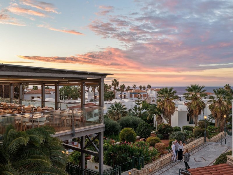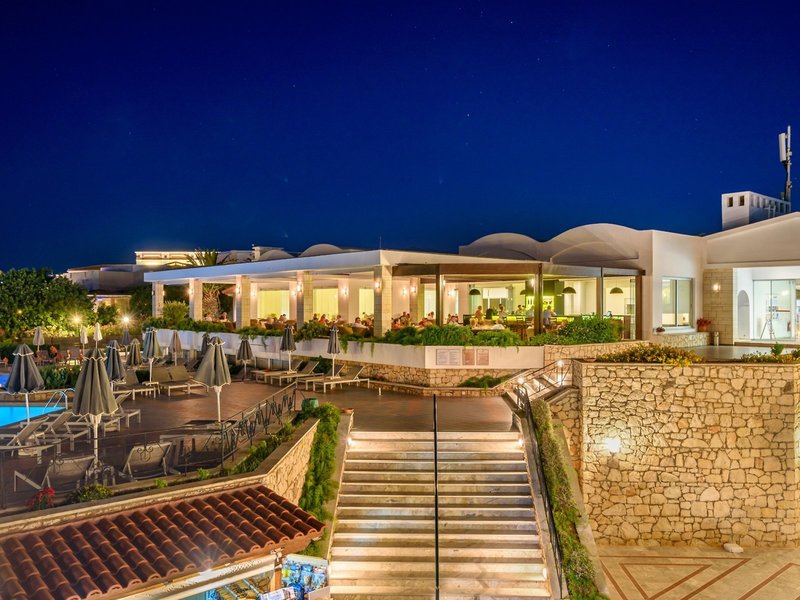 Poloha a okolie Hotelový komplex sa nachádza v tesnej blízkosti obľúbeného rušného dovolenkového strediska Hersonissos. Tento rodinný hotel má vlastný úsek mierne kamienkovej piesočnatej pláže, ktorá bola niekoľkokrát ocenená Modrou vlajkou EÚ za svoju krištáľovo čistú a čistú vodu. V centre Hersonissosu, vzdialenom približne 3 km, hostia nájdu množstvo reštaurácií, barov, krčiem, diskoték, obchodov a pamiatok. Medzinárodné letisko Nikosa Kazantzakisa je od rezortu vzdialené približne 22 km.
