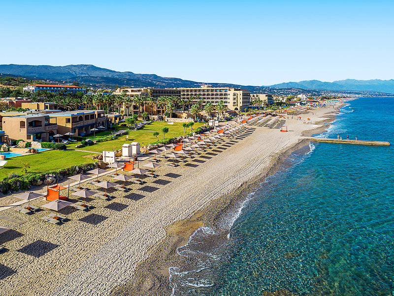Hotel in Traumlage mit 800 m Strand. Genießen Sie die gastronomische Vielfalt, die griechische Herzlichkeit und den exquisiten Service. Entdecken Sie die Vorzüge der Stadt Rethymnon mit all ihren Facetten. Entspannen Sie bei einem Strandspaziergang am langen Strand oder relaxen Sie an der herrlichen Poollandschaft.