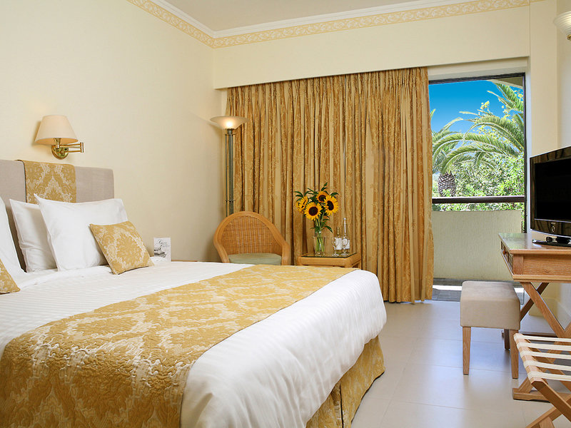 Bývanie: Dvojlôžková izba (DR, cca 25 m2), klimatizácia, minibar (za poplatok), príslušenstvo na prípravu kávy/čaju, TV, telefón, WLAN, trezor. Vaňa, WC, fén. Balkón s výhľadom do záhrady, voliteľné s výhľadom na more (DZM). Max. 3E, rezervovateľné na jedno použitie (SR)