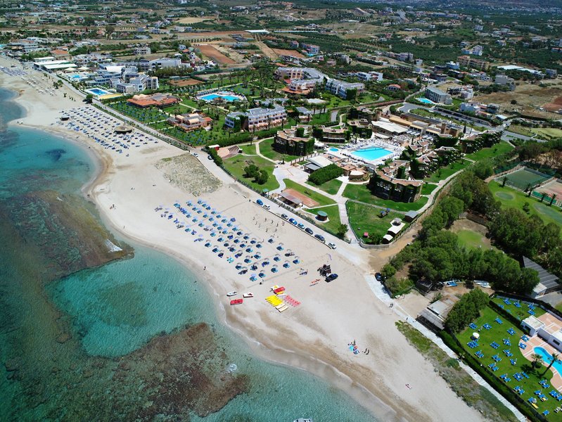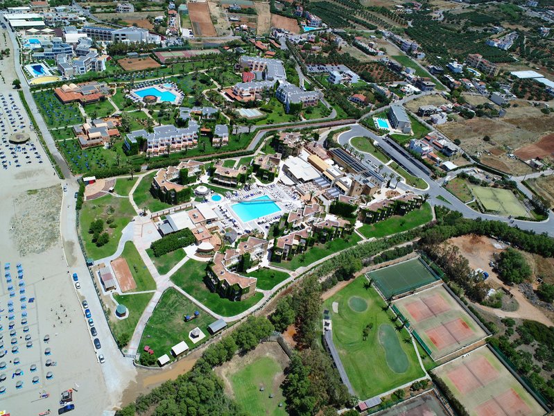 Ausstattung: Das Hotel verfügt über 175 Zimmer und bietet Ihnen eine Empfangshalle mit 24-h-Rezeption, Wi-Fi (inklusive), 1 Hauptrestaurant und 2 Themenrestaurants ("Olive Tree" Fischrestaurant und "Orion" griechisches Restaurant), 4 Bars (Haupt-, Weinbar, Pool- und Beach), Minimarkt und ein Hallenbad (April bis 15 Mai und im Oktober beheizt, Wetterbedingt). In der Außenanlage befinden sich 2 Swimmingpools, einer davon ist ein Kinderpool. Liegen und Sonnenschirme sind am Pool und am Strand inklusive.
