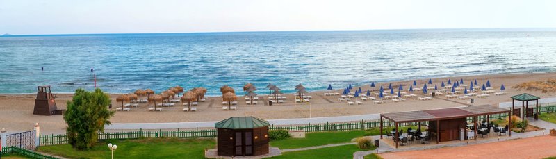 Vybavenie: Hotel má 175 izieb a ponúka vám lobby s 24-hodinovou recepciou, Wi-Fi (vrátane), 1 hlavnú reštauráciu a 2 tematické reštaurácie (rybia reštaurácia „Olive Tree“ a grécka reštaurácia „Orion“), 4 bary ( hlavná -, vináreň, bazén a pláž), minimarket a krytý bazén (vyhrievaný od apríla do 15. mája a v októbri v závislosti od počasia). Vo vonkajšom areáli sú 2 bazény, z toho jeden detský. Ležadlá a slnečníky sú v cene pri bazéne a na pláži.