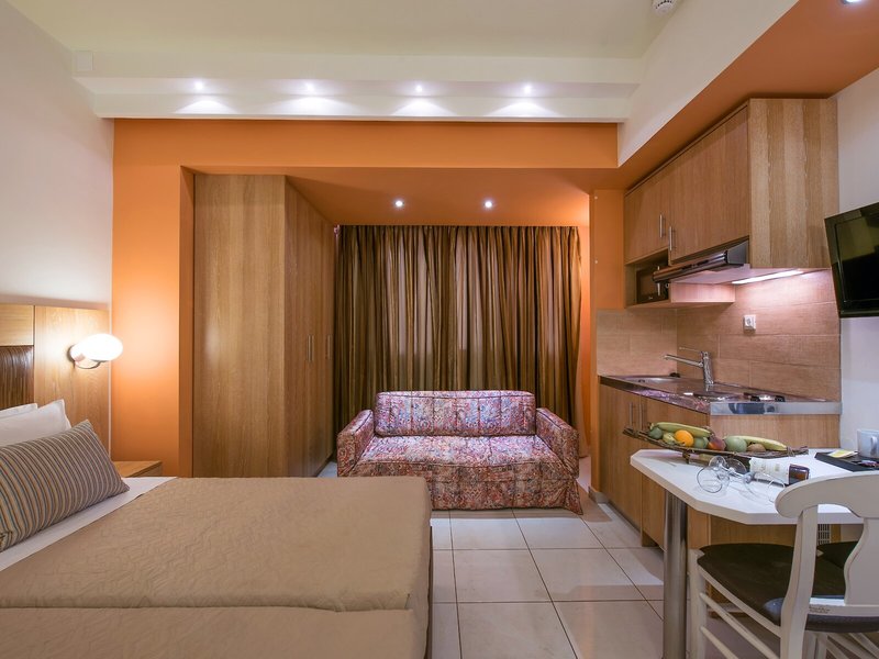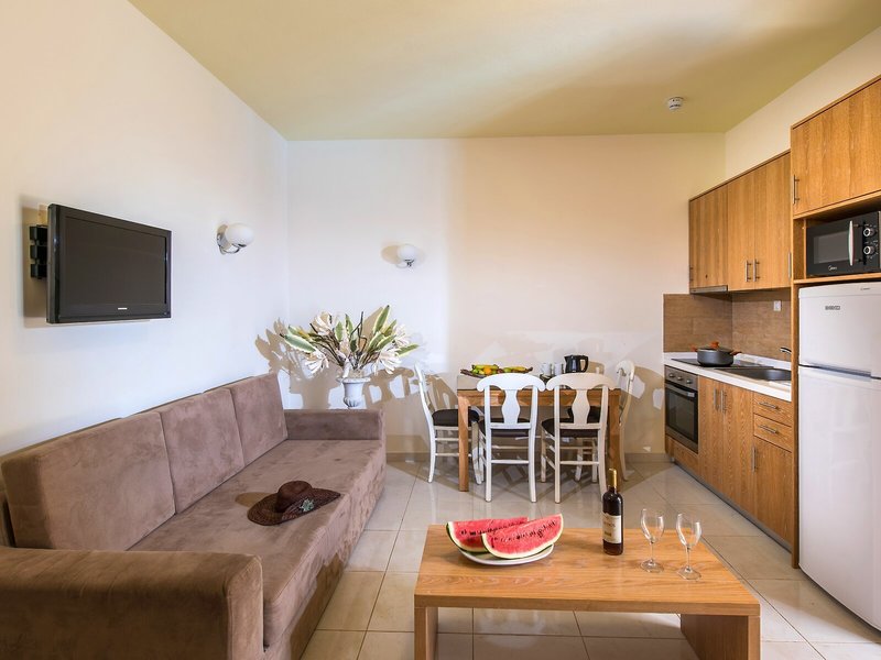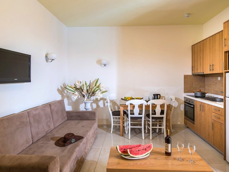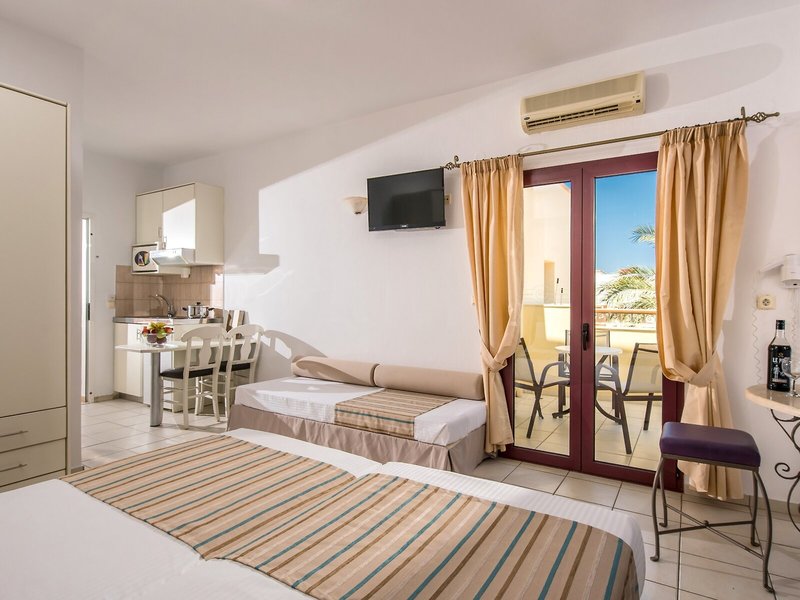 Lage & Umgebung Die Apartmentanlage liegt in Mália, in der Nähe eines Sandstrandes, in ruhiger Lage. Von der Unterkunft aus sind es nur wenige Augenblicke bis ins Nachtleben und zu den Einkaufsmöglichkeiten der Umgebung.